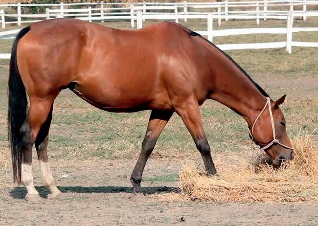 If the pasture your mare is on is of low quality (for example sub-tropical C4 Type pastures, or pasture that has matured, gone to seed or browned off), add some high quality alfalfa/lucerne hay to raise the quality of protein in the forage component of her diet. If you are using supplementary feeds on low quality pasture, select feeds that use legumes and oilseeds with quality protein, including soybean, lupins, faba/field beans and canola meal.