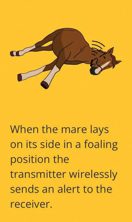 Minimise loss of sleep and long hours of supervision around foaling time - the non-invasive transmitter attaches to the halter and detects when the mare has laid in a foaling position.