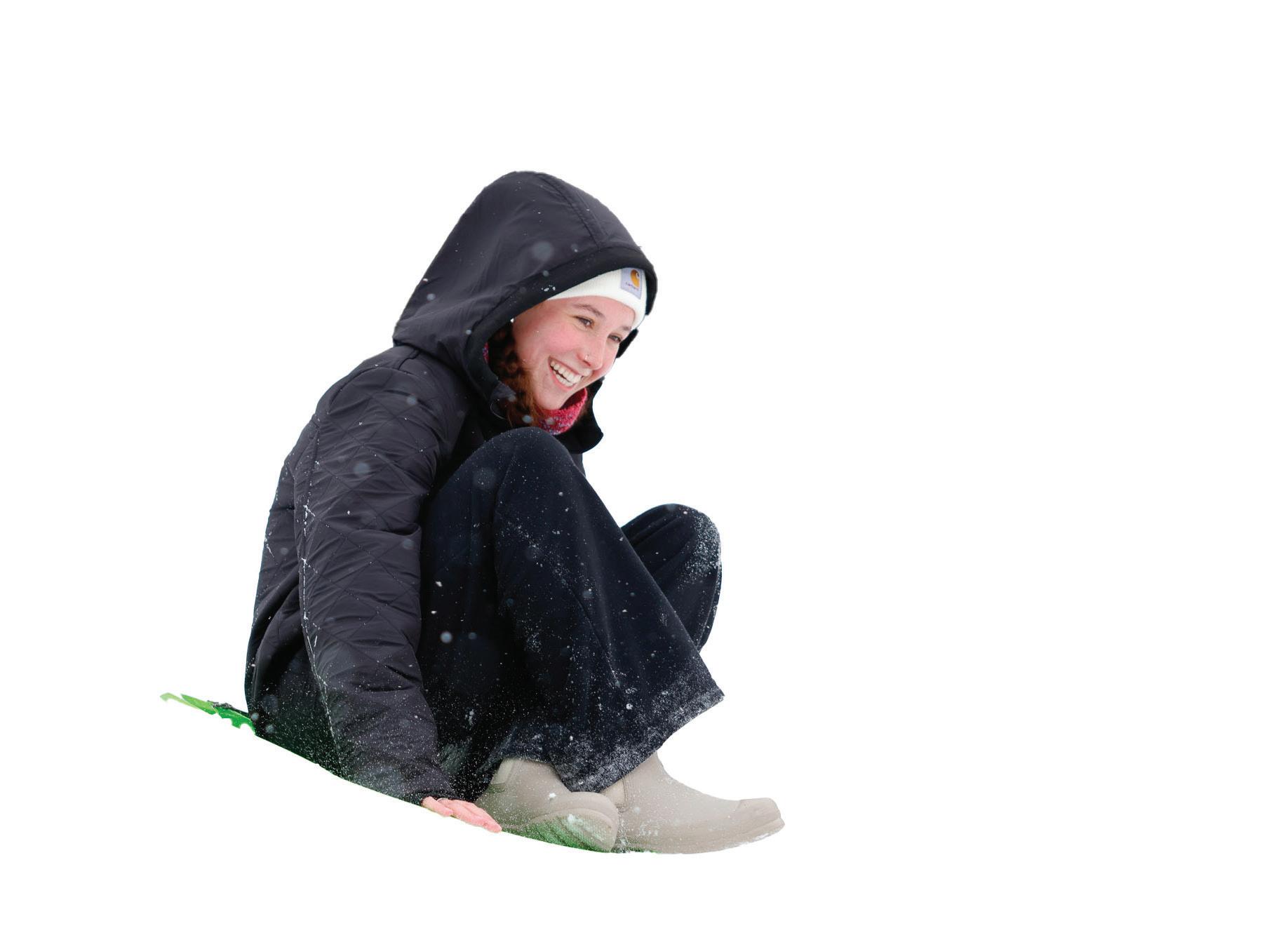 Junior Grace Manuel, freshman Samantha Duran and junior Macey Savell sled down hills near the Benson Auditorium. Students enjoyed four