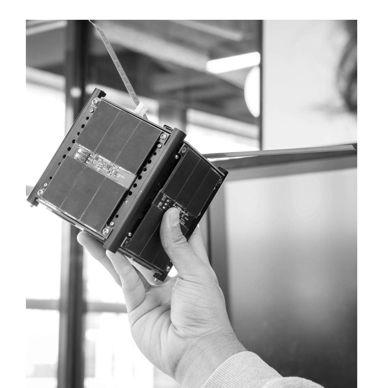 It’s an unassuming black cube. With six sides of solar panels, dense wiring, circuit boards and a tape measure as an antenna, the satellite fits in the palm of your hand.