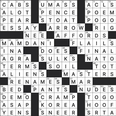 20.Mentally prepares 21.Wash the floor, perhaps 24.Ted __, character played by Jason Sudeikis