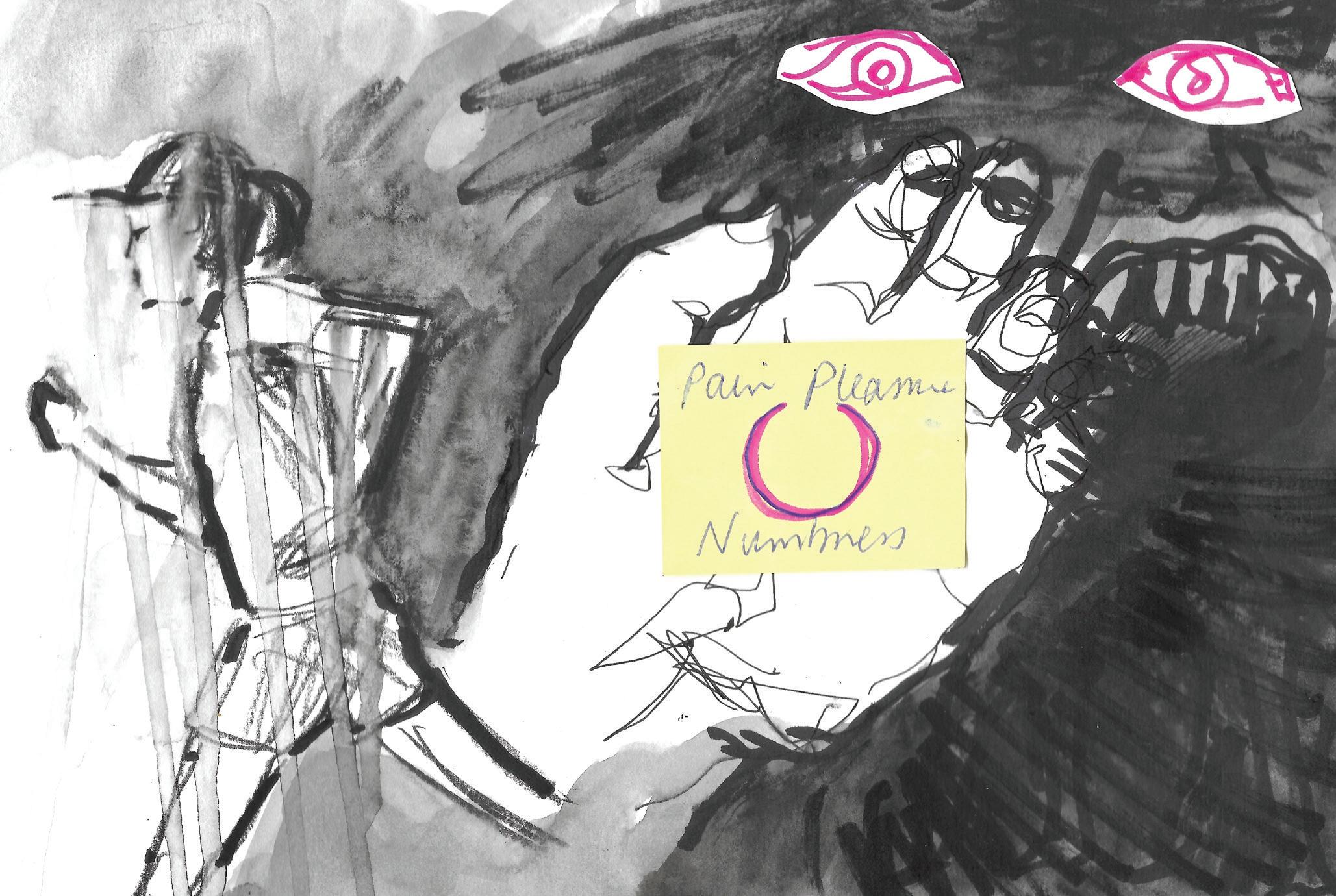 I grab a post-it and draw a circle, leaving the ends unclosed. At the start I mark pain, where I raise my pen I write pleasure. I note numbness along the opposite pole and hand this to you, receiving a blank stare in return. It is easy to imagine the opposite of joy to be suffering, I try to explain. But it’s not It’s nothing. Together we pathologize: when suffering from a migraine the patient seeks anesthetic, not elation. We speak in sermons: perhaps heaven and hell share borders, bounded together against the vast nothingness beyond. I tell you about the times I’ve hurt, or have wanted to be hurt, or have mistaken pain for pleasure due to their sheer proximity on the nebulous map of feeling. I tell you that letting it happen to me somehow protects me from it all.