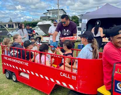 painting kept tamariki entertained, with a much-loved highlight being the little fire engine giving young ones a ride around the marae ātea. Market and kai stalls reflected the generosity of the community. Te Puritanga o Hei kura were up before dawn, with kaiako and parent helpers preparing a hāngī from 5.30am that sold out early. Intergenerational stallholders featured too, including a grandmother alongside her mokopuna selling sweets.