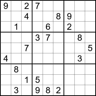 Fill in the boxes using the numbers 1 to 9. Every row and column, and every group of 9 boxes inside the thick lines, must contain each number only once.