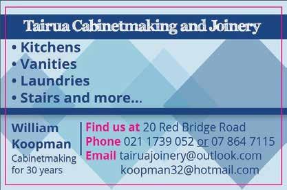 Whitianga Menz Shed – Open Tues/Thurs, 9am-12 noon. At the Moewai Park end of South Highway, past the diesel truck stop. All welcome. Whitianga Playcentre – Every Tues/Fri 9am-12 noon, 1F White St. Contact whitianga@playcentre. org.nz or 027 880 3947.