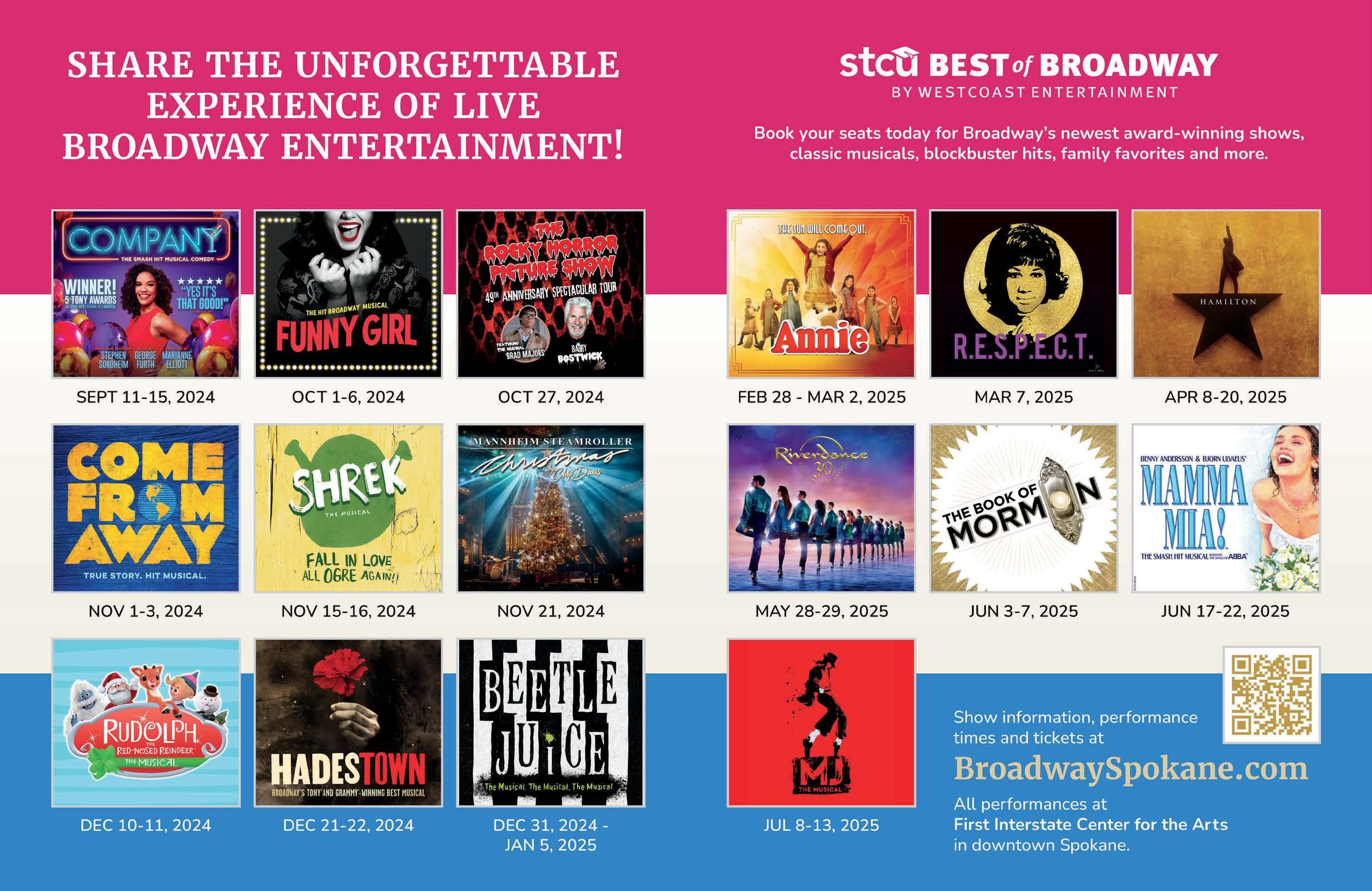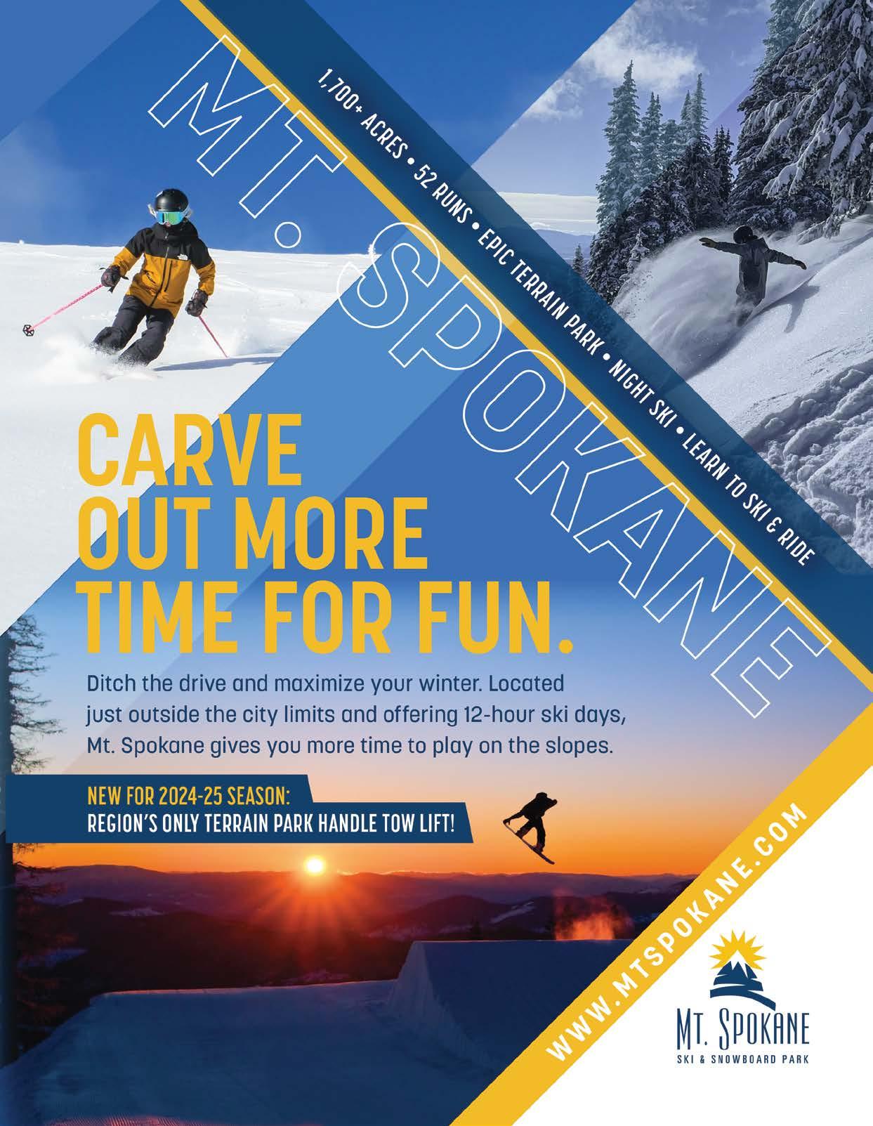 Don’t put off heading out to a Spokane Velocity or Zephyr soccer match at ONE Spokane Stadium, or checking out a new place to eat, like the French fare at Lorén or Afghan cuisine at Emran. Get tickets to a touring Broadway show like outside your comfort zone and try a local escape room like Think Tank. Read all about these and more in the 2024-25 edition of