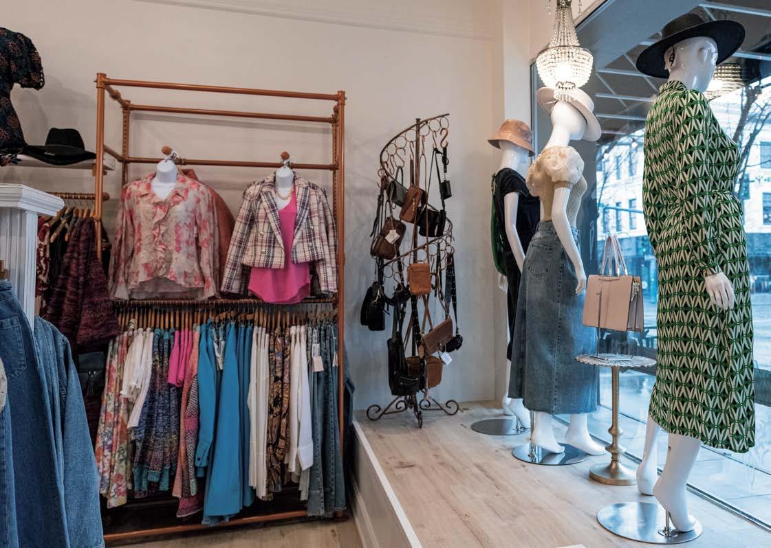 Styled by Fay Ripley of Red Leaf Vintage, pictured walking along the reconstructed Post Street Bridge in downtown Spokane.