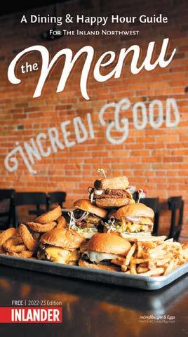 THE INLANDER is a locally owned, independent newspaper founded on Oct. 20, 1993. Please recycle THE INLANDER after you’re done with it. One copy free per person per week; extra copies are $1 each (call x226). For ADVERTISING information, email advertising@inlander.com. To have a SUBSCRIPTION mailed to you, call x210 ($78 per year). To find one of our more than 1,000 NEWSRACKS where you can pick up a paper free every Thursday, call x226 or email frankd@ inlander.com. THE INLANDER is a member of the Association of Alternative Newsmedia and is published at least twice per month. All contents of this newspaper are protected by United States copyright law. © 2023, Inland Publications, Inc.