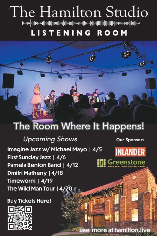HAMILTON A musical following the rise of founding father Alexander Hamilton as he fights for honor, love and a legacy that would shape the course of a nation. April 8-20; Tue-Sat at 7:30 pm, Sat and Sun also at 1 pm.$45-$125. First Interstate Center for the Arts, 334 W. Spokane Falls Blvd. broadwayspokane.com