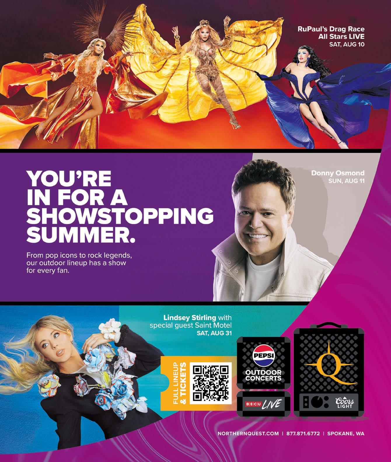 DANCE WITH A FROZEN CAST MEMBER Dance with performers from the Frozen national tour company. Each class features a Q&A and photos with cast members Kate Bailey & Leigh-Ann Etsy. Aug. 3, 9-10:30 am & 10:30 amnoon. $30. Myrtle Woldson Performing Arts Center, 211 E. Desmet Ave. indaspokane.org/broadway-workshop