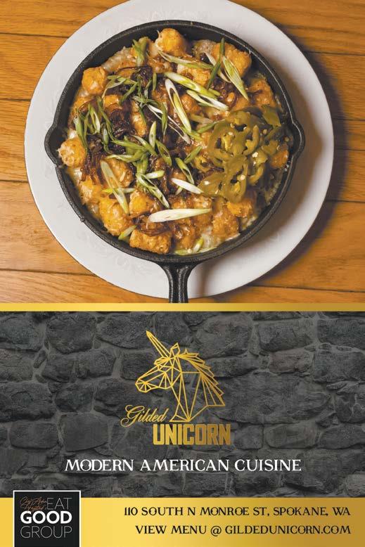 At the quirky, cozy GILDED UNICORN in downtown Spokane, one of diners’ third course choices is the Unicorn dessert martini, a decadent concoction of huckleberry cream, blueberry, chocolate liquor, whipped cream and sprinkles. Yum.