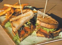 Some restaurants twist themselves into knots to disguise veggies as meat but HONEY SOCIAL CLUB & EATERY does the opposite, heightening the inherently savory potential of mushrooms for its vegetarian meatless meatloaf. The texture is spot-on for this choice of entrée with a side of sweet potato hash and tangy topping of barbecue sauce made from Laughing Dog Brewery beer.