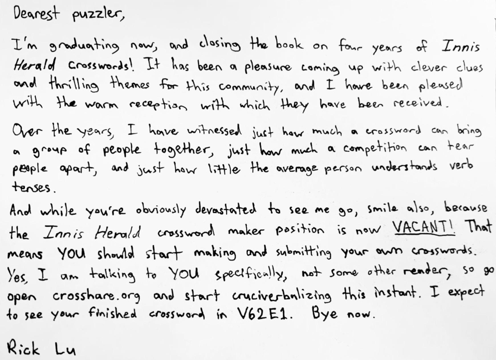 It’s been my privilege to be a part of this masthead, and I hope those who join the Herald in years to come are able to find and take part in the communal and creative spirit that I have witnessed over the past year. While it has been said more than enough times, I am duty-bound to remind you all that hot people read the Herald, hotter people contribute to the Herald, and the hottest people run the Herald.