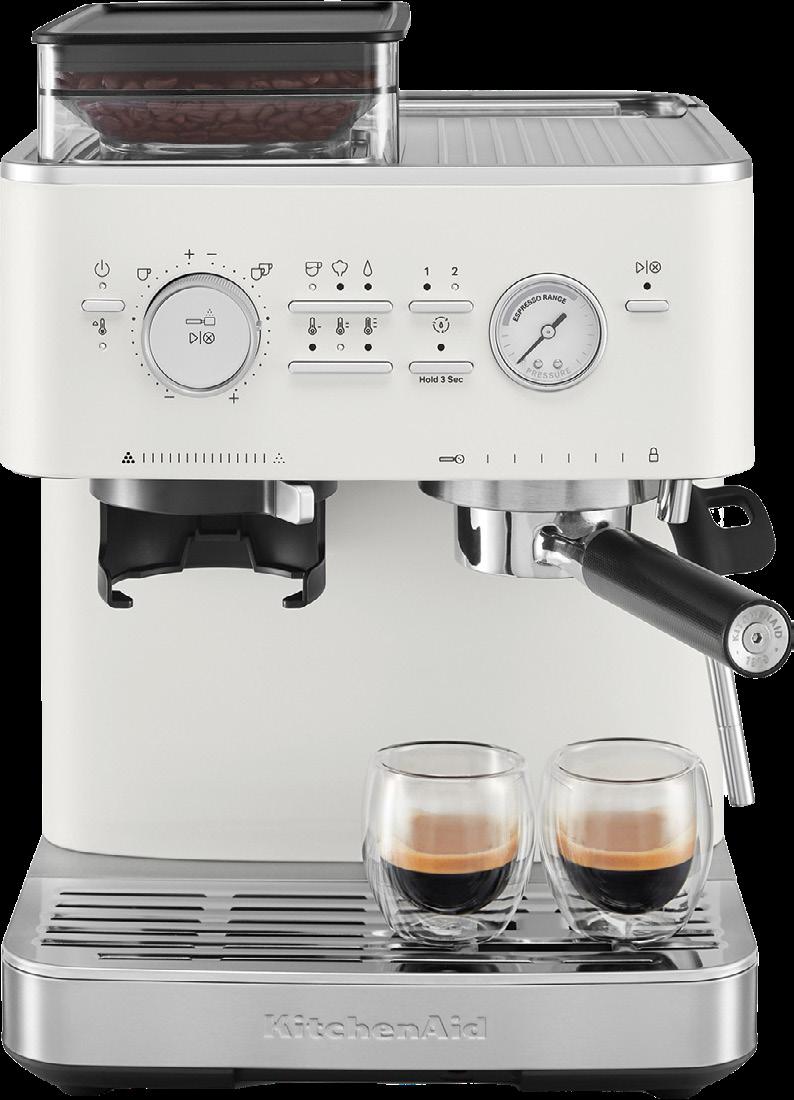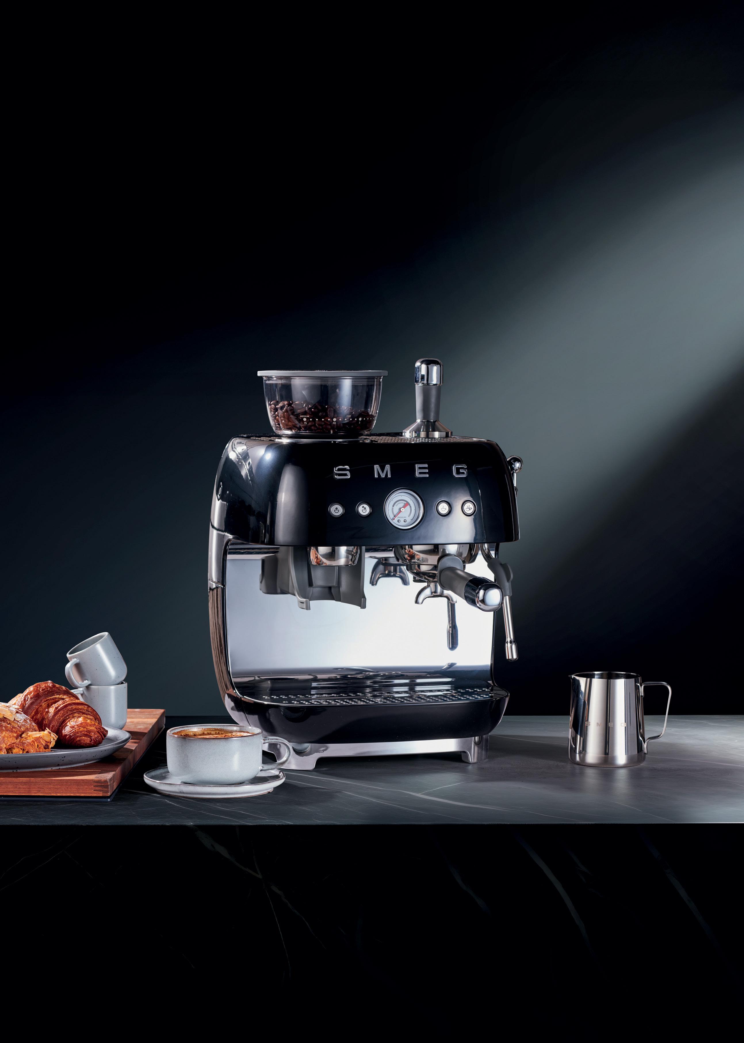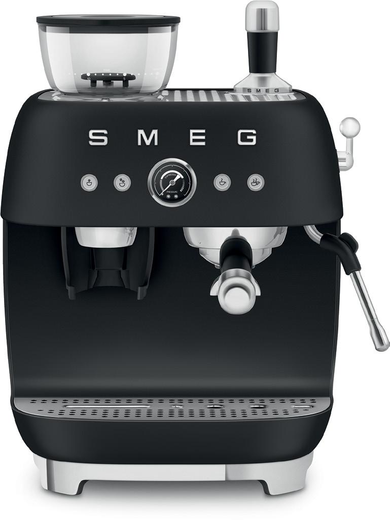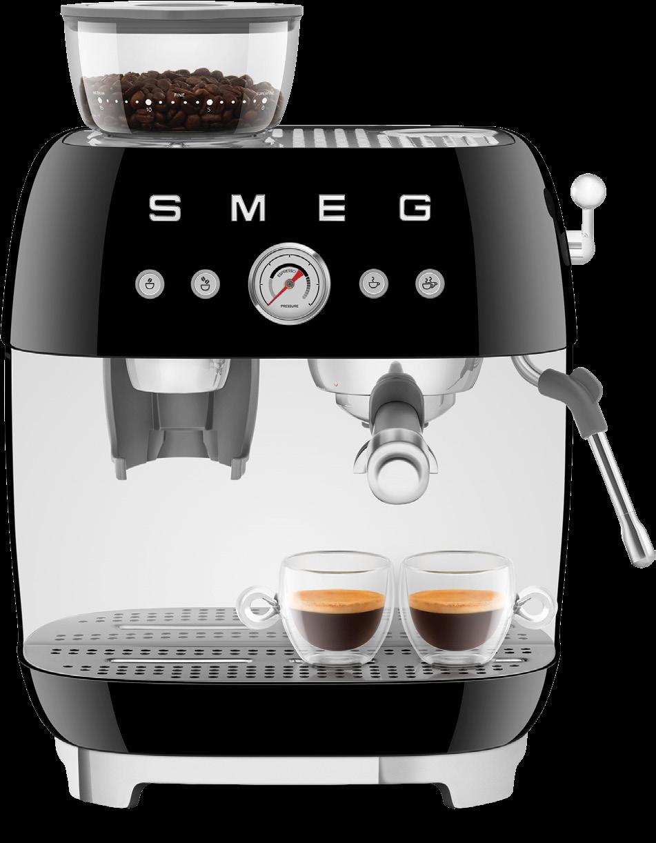 Building on the momentum of matte black across Smeg’s built-in and freestanding kitchen appliances, the finish extends to the coffee segment, bringing the same design-led sophistication to the benchtop. Matte black adds depth, subtle texture and a refined tactile quality, allowing appliances to feel considered as part of the overall kitchen aesthetic. At the forefront is the Smeg EGF03 Espresso Coffee Machine with Grinder. Combining iconic 50s Italian design with modern caféquality performance, it features a 58mm professional portafilter, dual thermoblock system and 20 bar pump. The matte black finish transforms a daily ritual into a design statement, allowing the machine to act as both a functional tool and a visual anchor on the bench. Matte black in the coffee category extends the same cohesive design story established by ovens, cooktops and rangehoods, showing how style and performance can flow seamlessly across the kitchen, from benchtop to built-in.