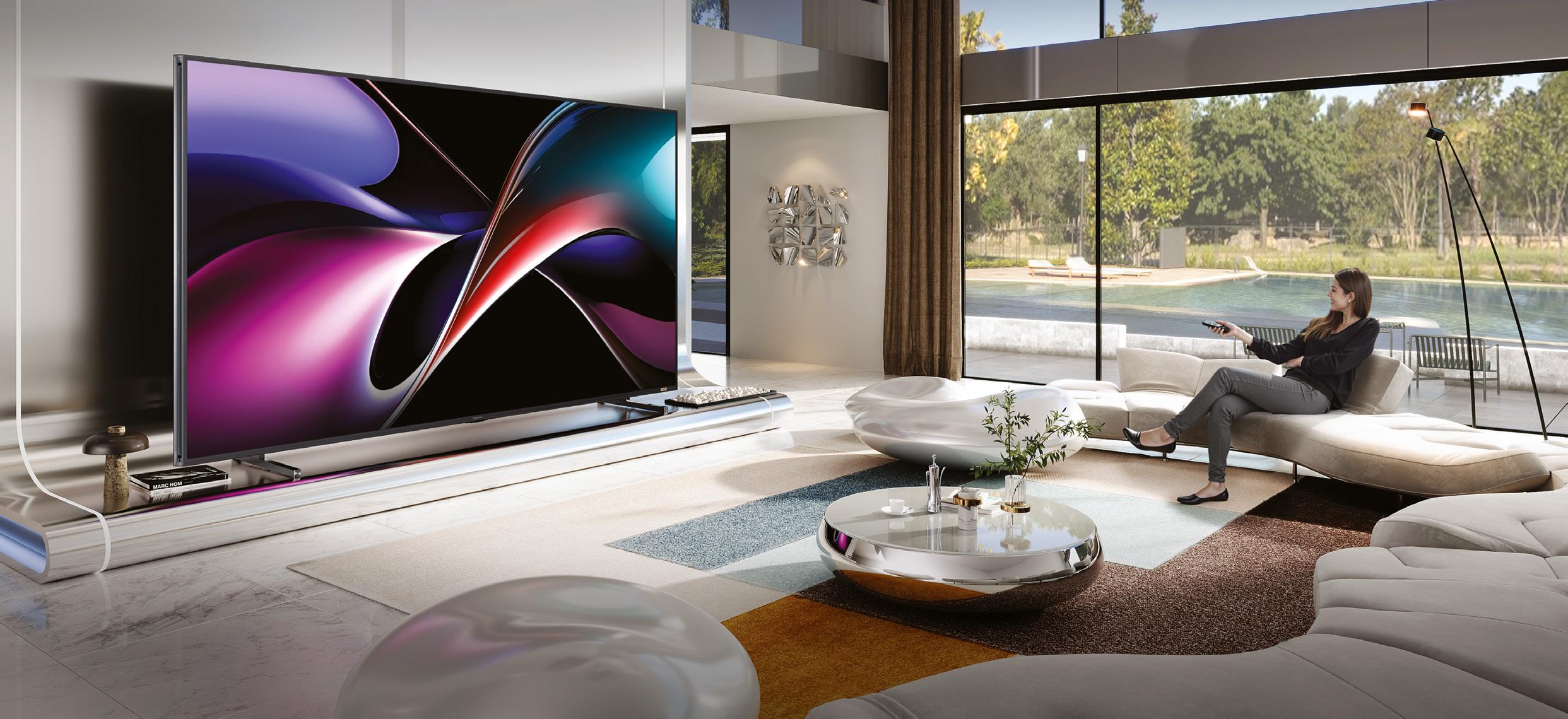 The Hisense 116-inch RGB MiniLED UX 4K 165Hz Smart TV is 30 per cent more efficient than previous models of its size category due to the powerful AI Eco features.