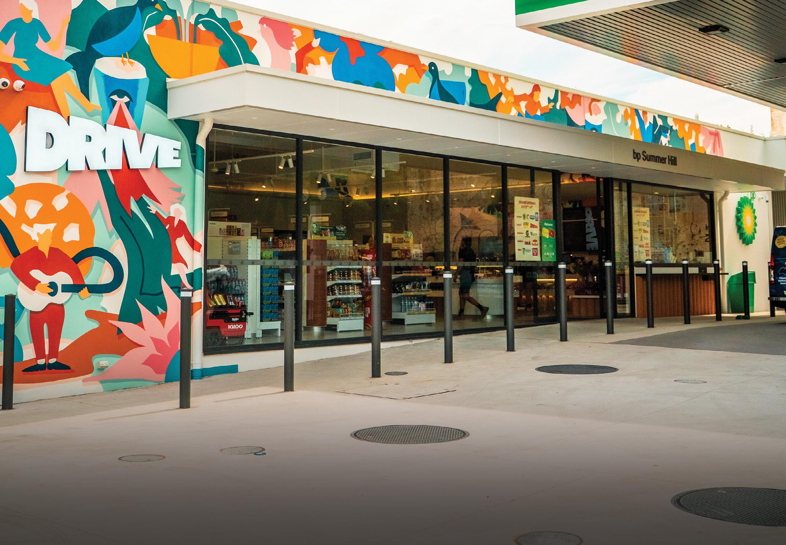 Above: Blue Robe Petroleum's new flagship store, bp Summer Hill, featuring artwork by Studio Dennis