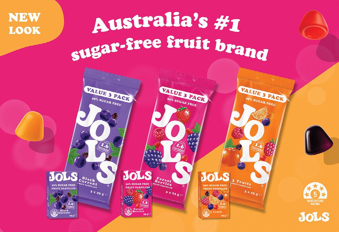 Forest Berries, 3 Fruits and Blackcurrant now land on shelves with louder colours, value three packs and the same juicy chew Australians have loved since 1995. As Australia’s number one sugar-free fruit brand, JOLS delivers big flavour without the sugar. The refreshed packs are designed to stop shoppers fast and spark instant impulse buys across supermarkets, convenience and independents. Order your JOLS today from The Distributors! www.the-distributors.com.au | 1800 989 022