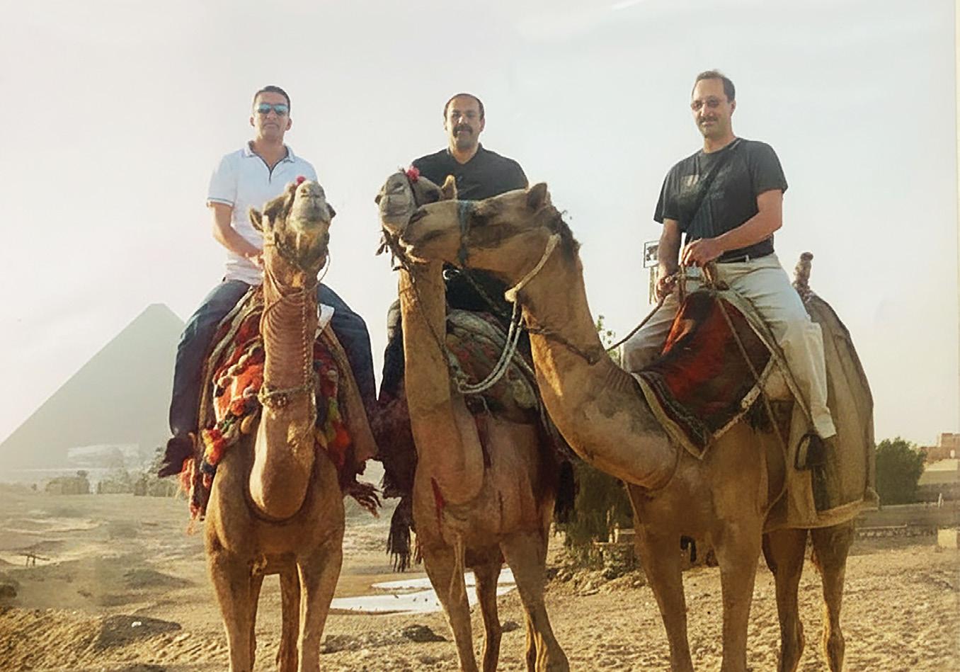 Maher, far left, with his two older brothers on camels at the pyramids in Egypt