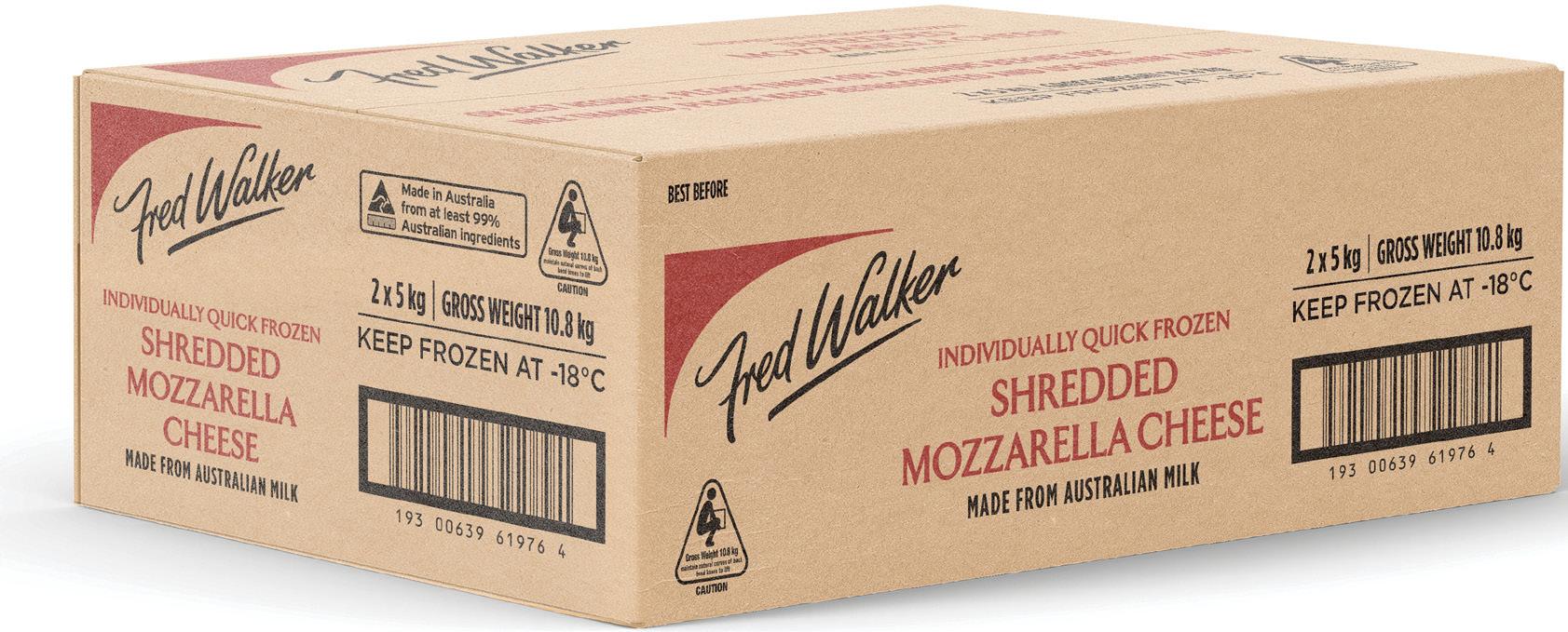NEW Fred Walker Individually Quick Frozen Mozzarella is a quality, convenient, diced shred mozzarella that delivers the great TASTE , melt , STRETCH , and blister properties, with the added benefit of 365 days shelf life. Using a process of snap freezing mozzarella at its perfect age, it delivers the ultimate pizza solution all year round.