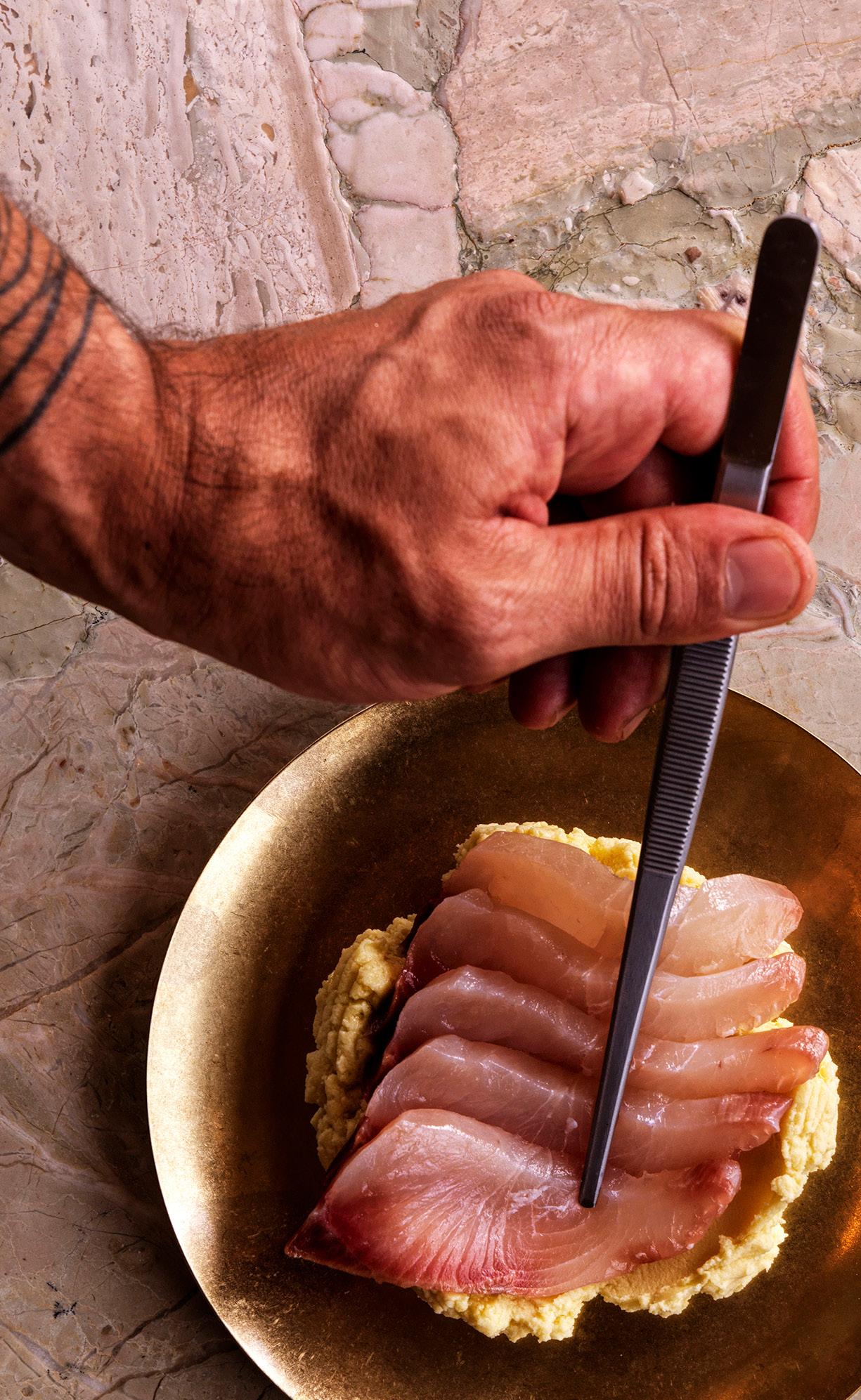 Lee says something that tastes great on its own does not always work harmoniously within the final dish. “For this reason, we always test stocks and sauces in combination with all accompanying components to ensure balance,” he explains. “Sometimes we’re fortunate enough to finalise it quickly, but more often than not, the final adjustment stage involves multiple rounds of refinement.”