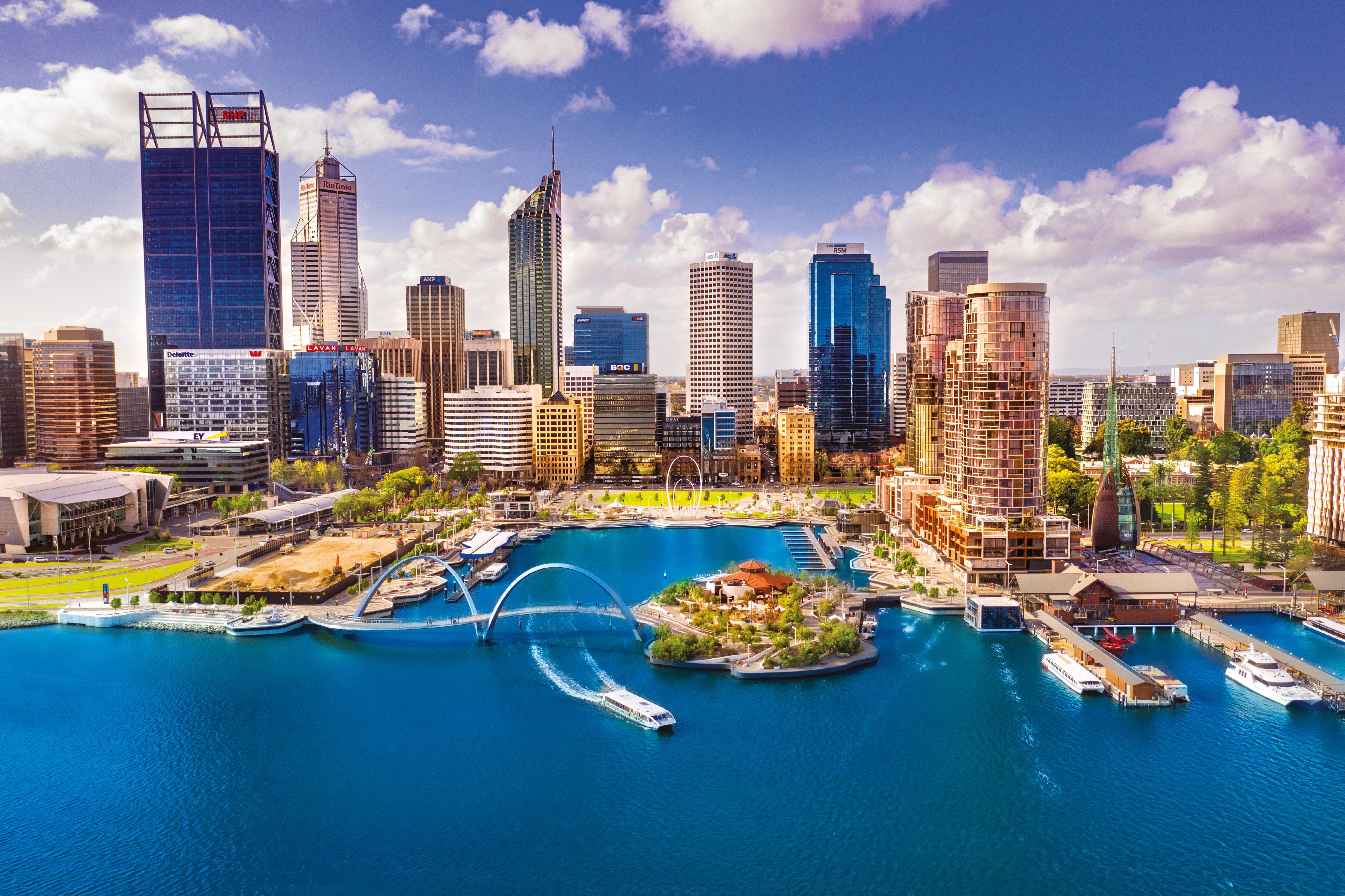 Perth city skyline. Courtesy of Tourism Western Australia.