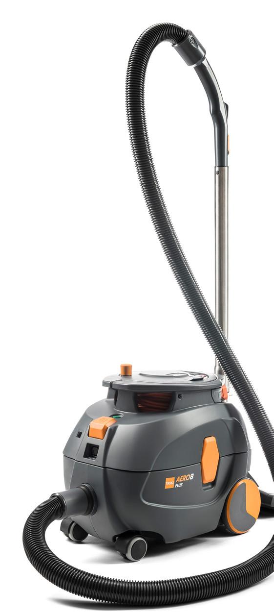TASKI AERO 8 Plus tub vacuum cleaner with whisper quiet technology. The TASKI AERO 8 Plus vacuum combines patented ultra-silent, whisper technology with an airflow system which delivers reliable and efficient cleaning at a peak noise rating of 53db(A), making it an ideal choice for both daytime and night-time cleaning. The efficient state-of-the-art 585W motor delivers the same cleaning result as a motor with more than 900W, achieved through the ingenious patent airflow system which also works to reduce energy costs and CO2. TASKI AERO 8 Plus features include dust bag indicator and optional HEPA filters, an ‘Eco mode’ button - just one press and noise emission fall to 50db (A) with an energy consumption decrease of roughly 50 percent to 300 watts.