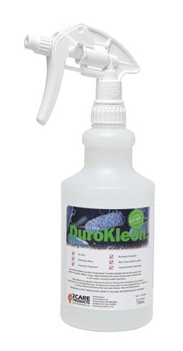 Look for green cleaning products that don’t contain hazardous chemicals, pose fewer health risks and are less hazardous to the environment such as Tersano’s Stabilised Aqueous Ozone (SAO), Care4 Environmental Choice certi ed chemicals or the water based cleaning-desinfectatnts from DuroKleen.