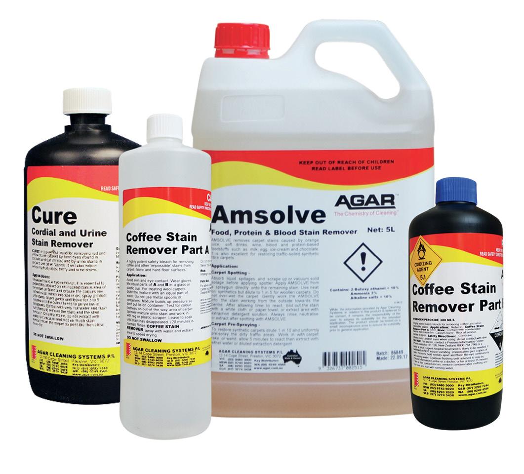 The highly effective, specialised carpet cleaning solutions from Agar are trusted globally and offer the best cleaning outcomes for a wide range of carpet soiling and stains. The range includes stain removers, pre-sprays, Hot Water Extraction (HWE) formulations, treatments, and upholstery care products. The superior concentrated formulations have been specifically designed and improved over many years and the high-performance products are field tested and proven for reliable, fast, and brilliant cleans every time. The solutions have been formulated to be gentle on users and there’s a colour coding system to make choosing the right solution to use simpler and safer. Talk to our friendly team to find out more.