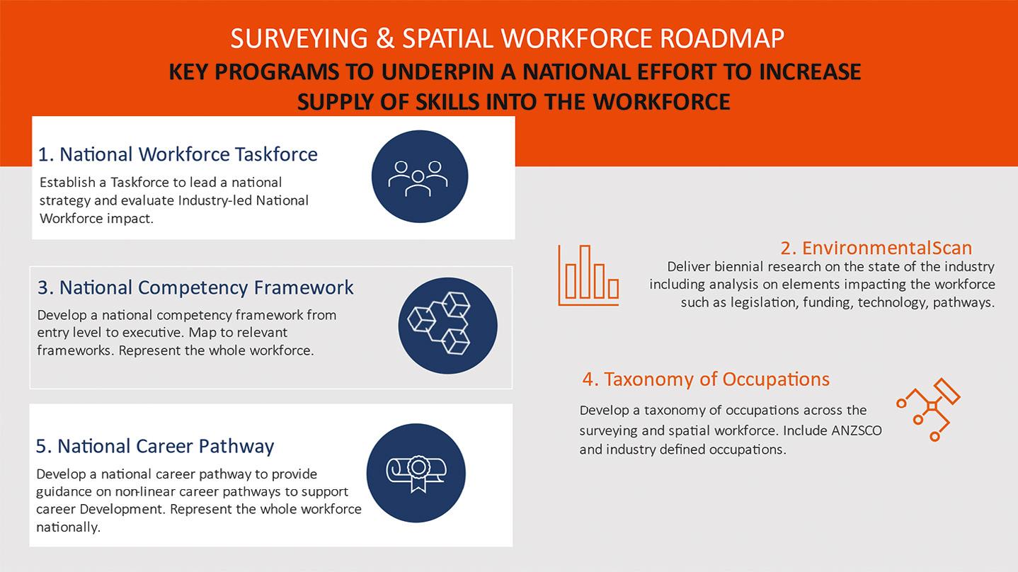 This includes developing the geospatial workforce to be ready for the future digital workplace through the attraction of new generation of professionals, raising the profile of the profession and providing learning opportunities.