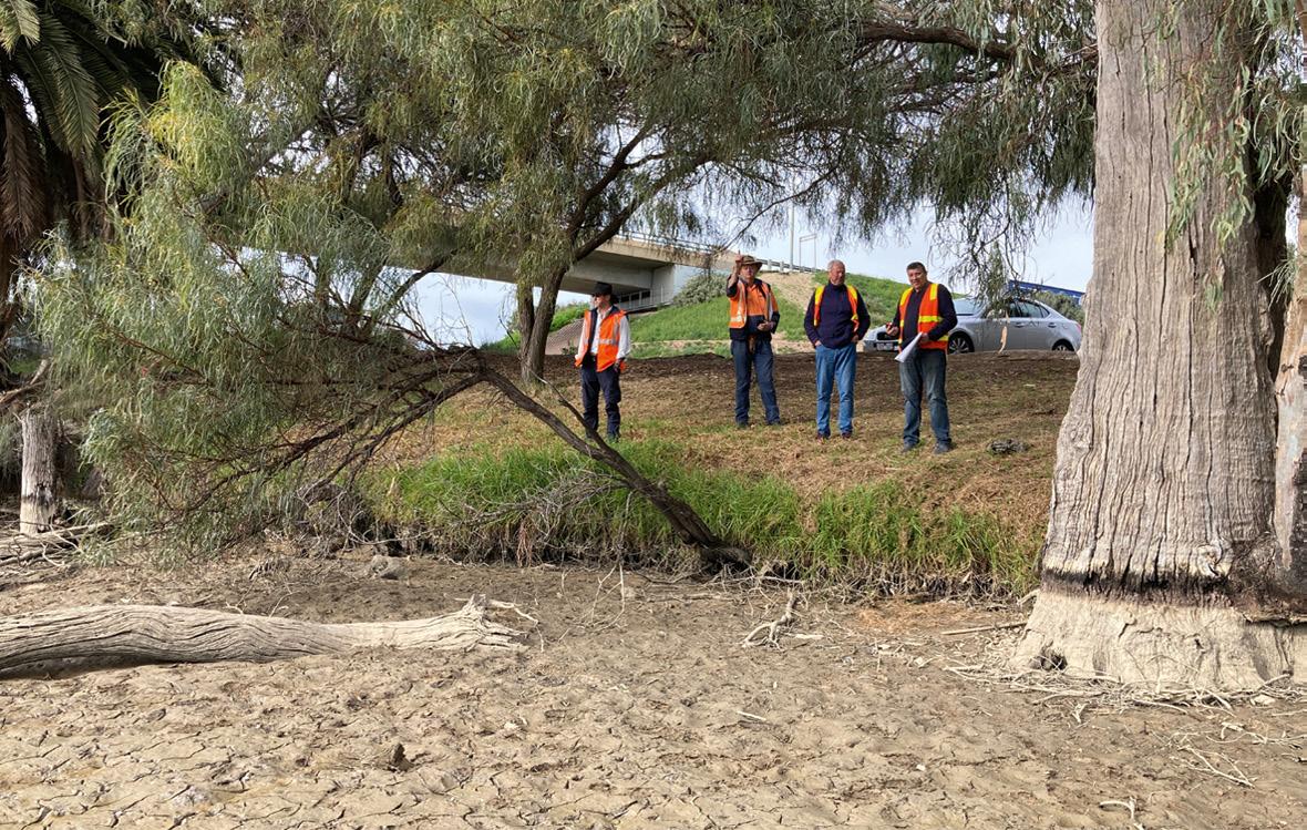 Specifically, the inspection team determined the precise line of the border between the nine-span, 331-metre-long George Chaffey Bridge (part of the Sturt Highway) and the downstream weir.