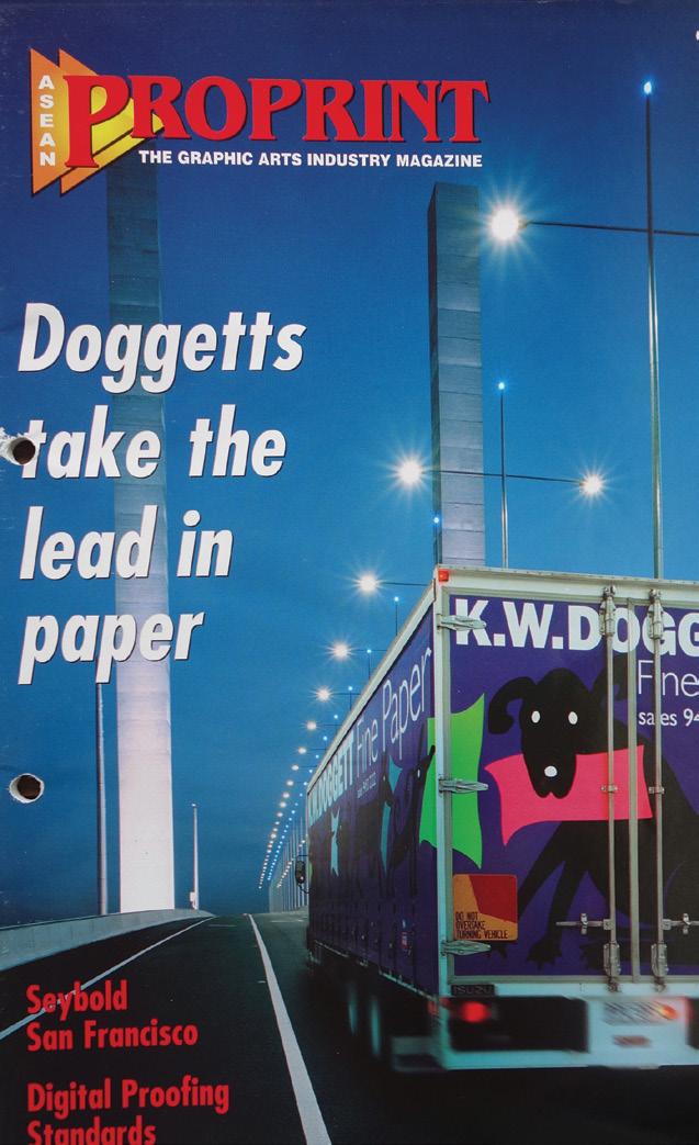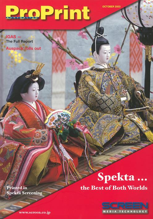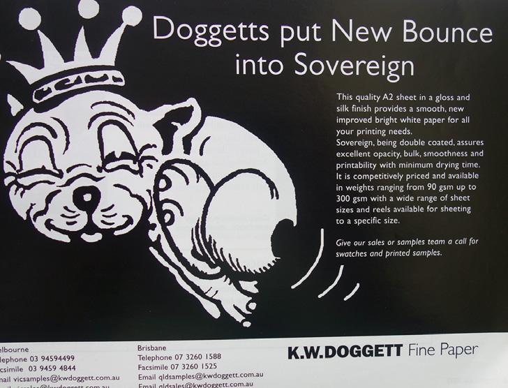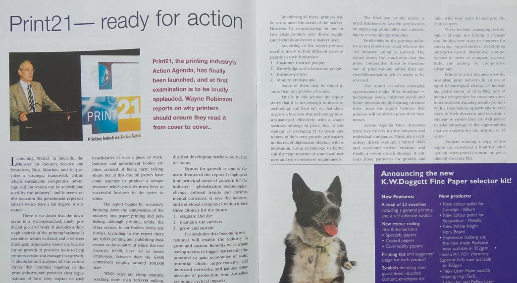 PrintEx03 was held with some manufacturers finding the space too small for their wares, while Horizon made a splash at IGAS 2003. Leo Moio stepped into print with the Print Media Group and in Perth, Picton Press installed Australia’s Lithrone S40. Pettaras Press was also making waves with celebrity of the time, Effie, launching the new Lithrone Ls6-40. Océ also got into the newspaper printing business using the Demandstream 8000 to remotely print copies of The Guardian and The Observer in Australia meaning those in Sydney and Melbourne could read the paper before London had even woken up. K.W. Doggett kept with the dog theme in some colourful advertising.