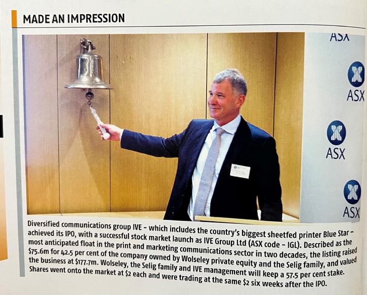 Left to right: Whirlwind celebrates 20 years in print; Andrew Macaulay new PIAA CEO; timeline of turmoil at the PIAA; CMYKhub’s wide format foray; Tharstern and Vpress partnership; Geoff Selig rings the ASX bell as IGL lists; Heroprint’s Alex Coulson on the cover; Kellie Northwood’s Two Sides; HP ad; Talks to end PIAA turmoil; Drupa’s key themes; Redbubble launches and PIAA leadership losses.
