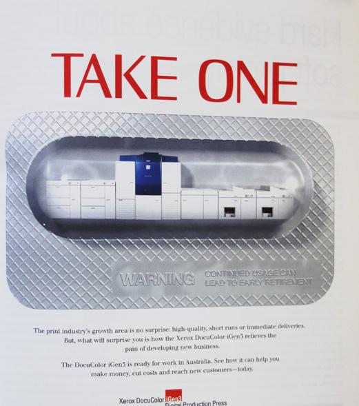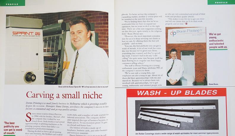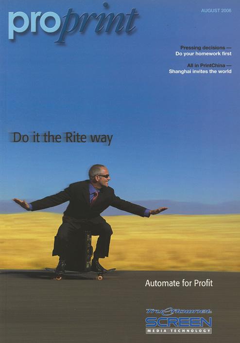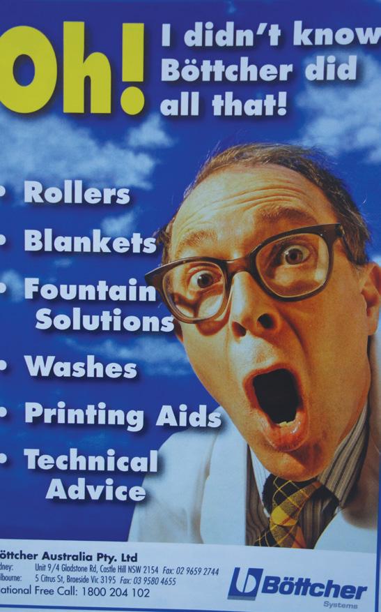 Being a drupa year there was thorough coverage of the show. David Currie featured on the July front cover charting Currie Group’s rise. Meanwhile there was lots of activity going on in the industry with Platypus Print’s developments and the installation of Australia’s first 12-colour Roland 700 at Chippendale Printing. KBA also made its first Karat install at iPrint - a joint venture between Wellcom and Australia Post. Warwick Roden of Rodenprint was also featured. There were also some quirky ads published, including an early appearance from EFI. There was also a laughterinducing correction from ProPrint’s then Editor, Steve Crowe – pity the sub-editor.