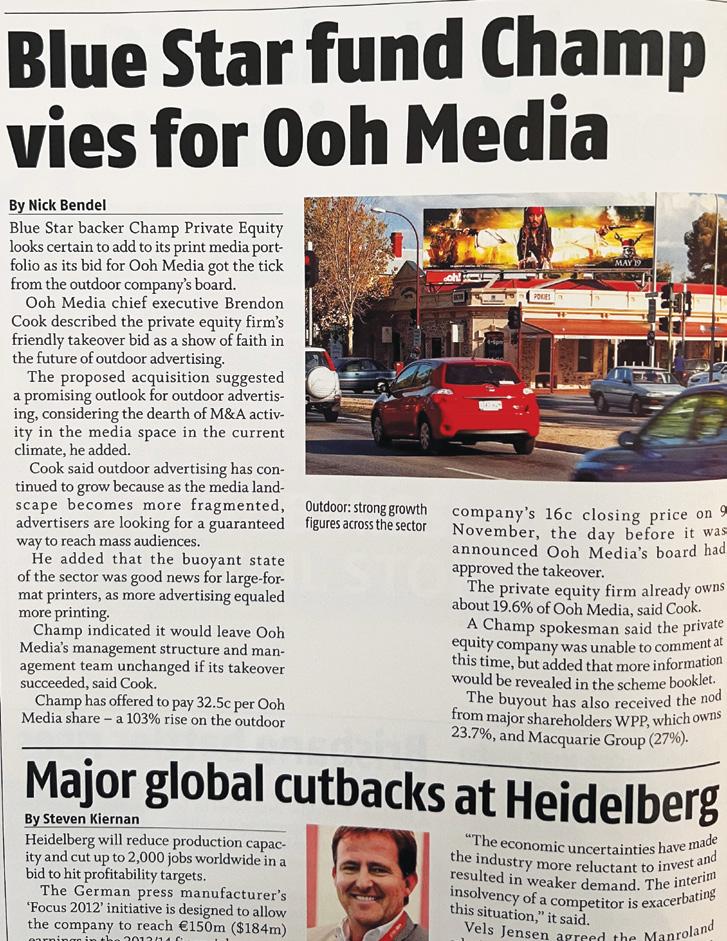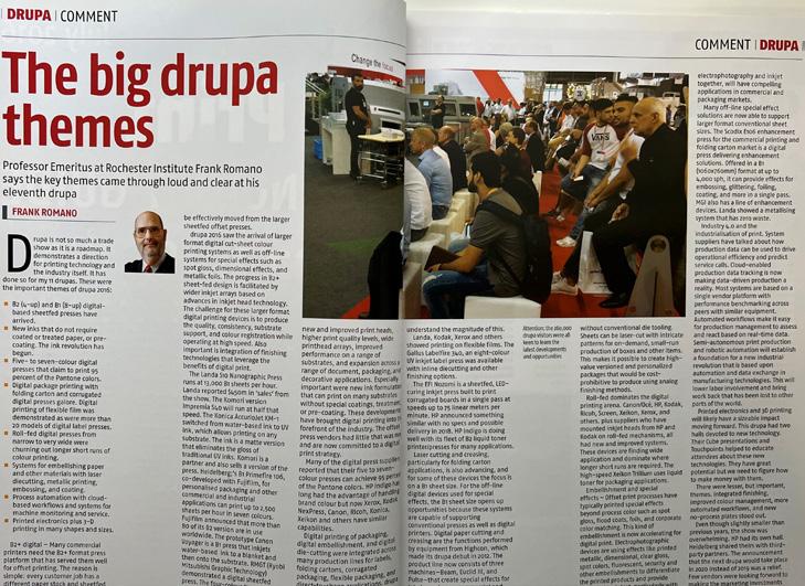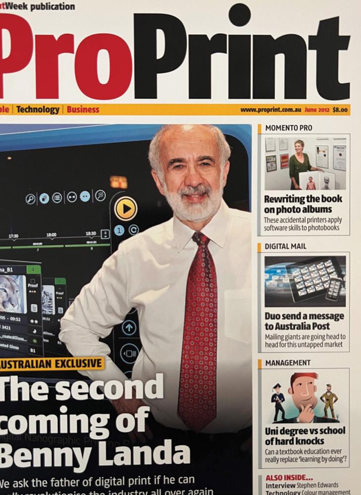 Left to right: Benny Landa makes a comeback; Industry associations merge; Two Sides appoints Northwood; ProPrint cover; Champ eyes oOh!media; Drupa gets underway; Colour Graphic Services on the cover; McPherson in the news; a Konica Minolta bizhub ad; Frank Romano visits Australia.