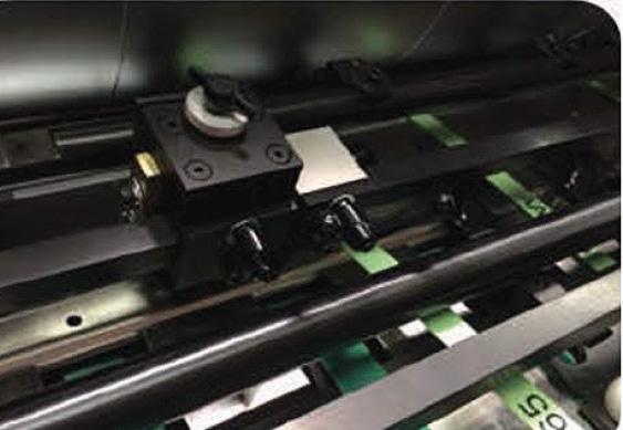 ATRUE GUIDE & GRIP REGISTER SYSTEM ENSURE SHEET-TO-SHEET ACCURACY. SIDE PULL GUIDE IS CAPABLE OF PULLING EITHER LEFT OR RIGHT TO MATCH PRESS REGISTER EDGES.