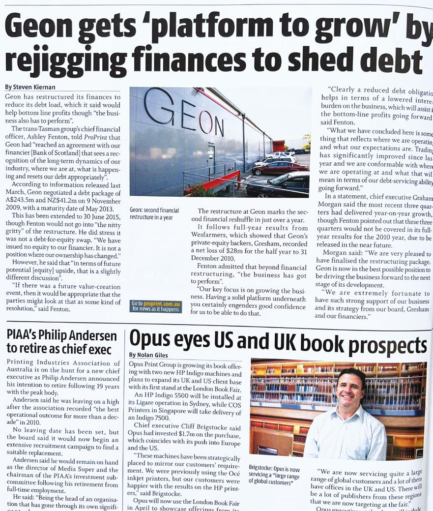 Emerging from the GFC, many were asking whether a new normal had been set. Printers were facing threats from digital and online retailing was really hitting home. Geon was busy rejigging its debt, while Opus Group was eyeing book prospects in the UK and the US. Women in Print dinners were held across the country with great success and print industry members slept rough to support the Vinnies CEO Sleepout. Michael Todisco also became became the sole director of PrintLinx, the trading name of Mercedes Waratah Group. The first ever ProPrint Power 50 was published with Richard Allely of PMP placing first.