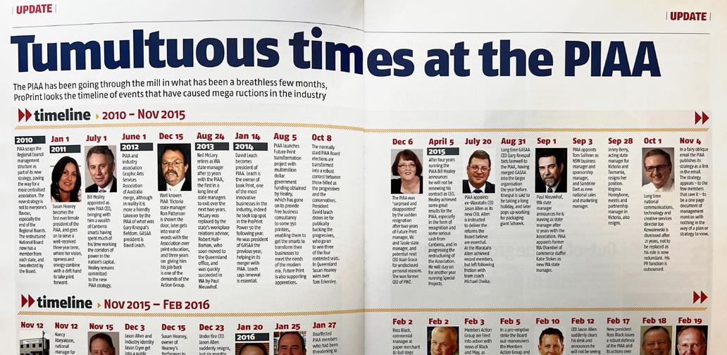 Industry consolidation was moving swiftly with IPMG moving to close Craft and the Champ private equity fund eyeing oOh!media. McPherson shareholders voted to demerge paving the way for a merger with Opus. Being a drupa year organisers threw open the doors to the world as ProPrint covered key industry events. The PIAA also announced it would merge with GASAA, in another show of consolidation. Geon’s communications and sustainability manager, Kellie Northwood, was named as the new manager of Two Sides. Benny Landa also blazed back onto the scene 11 years after selling Indigo sparking great expecations of what was ahead.