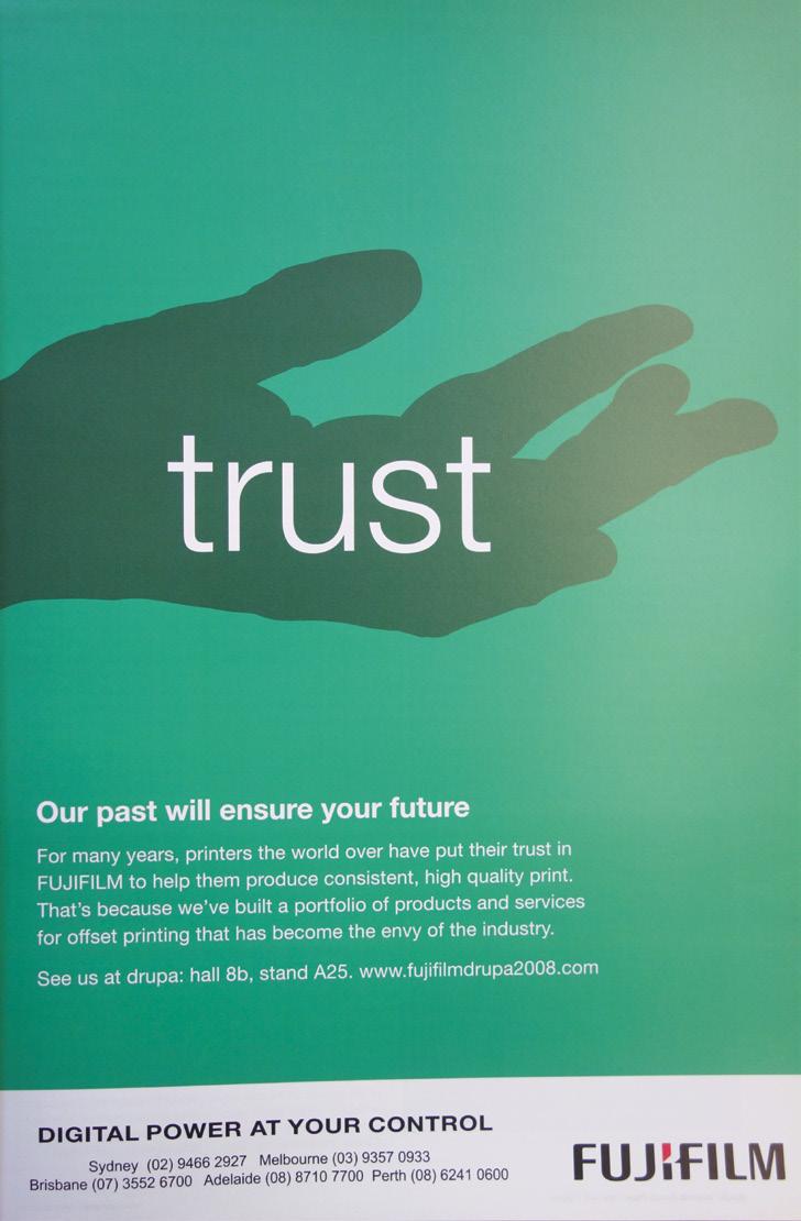From left to right: DS Chemport front cover; Celmac hosts Roland open house; Andrew Tribute lets loose; Geon causes waves; Komori’s drupa surprise; Fujifilm plays on the trust theme in this ad; ProPrint’s drupa coverage; MAN Roland goes wide; The Queen Victoria print room explored; ProPrint’s new owners; Screen teams up with Fujifilm on CtP; Neil Southerington at drupa.