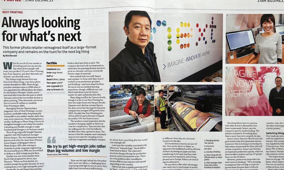 Print businesses were closing down and consolidating with the full details of Sumo Visual’s collapse revealed. Bright Print Group co-director Debbie Burgess talked down the effectiveness of social media in a ProPrint column. There was also an indepth feature into how select Australian printers were maximizing efficiency for gain featuring Tom Lusch from Platypus Graphics, Craig Pearce from Flying Colours in Tasmania and Naresh Gulati from Melbourne’s Print Bound. There were also plenty of gatherings from Asian Cup final celebrations to days out on boats with E-Bisglobal.