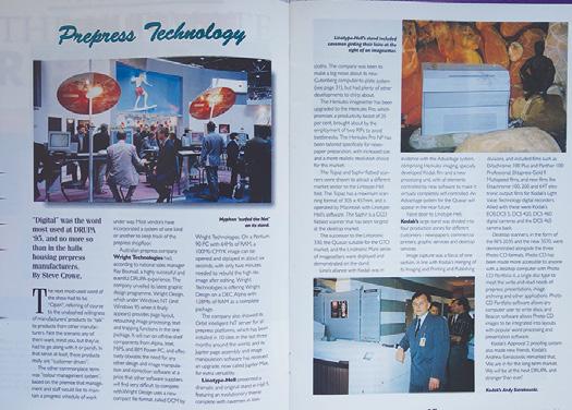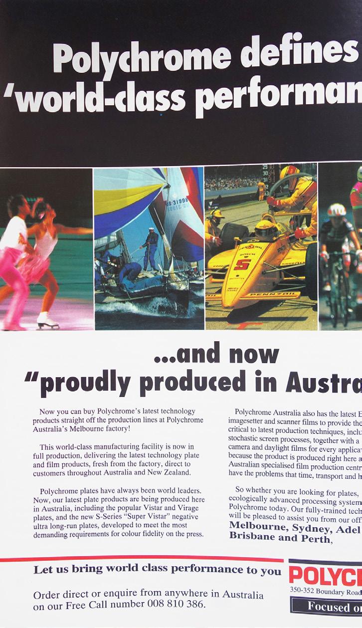 This was a drupa year so there was lots going on. The Indigo E-1000 had landed in Australia and the Agfa Chromapress was also turning heads. At drupa, Indigo exhibited a dozen presses and Xeikon was also there. Scitex announced a tie-up with Xerox, resulting in the Spontane — a colour laser printer. Heidelberg had the largest stand at drupa with a whopping 1500 employees working on it. Roland were also well represented. Anne Rimer was elected as the Graphic Arts Merchants Association of Australia’s first female president.