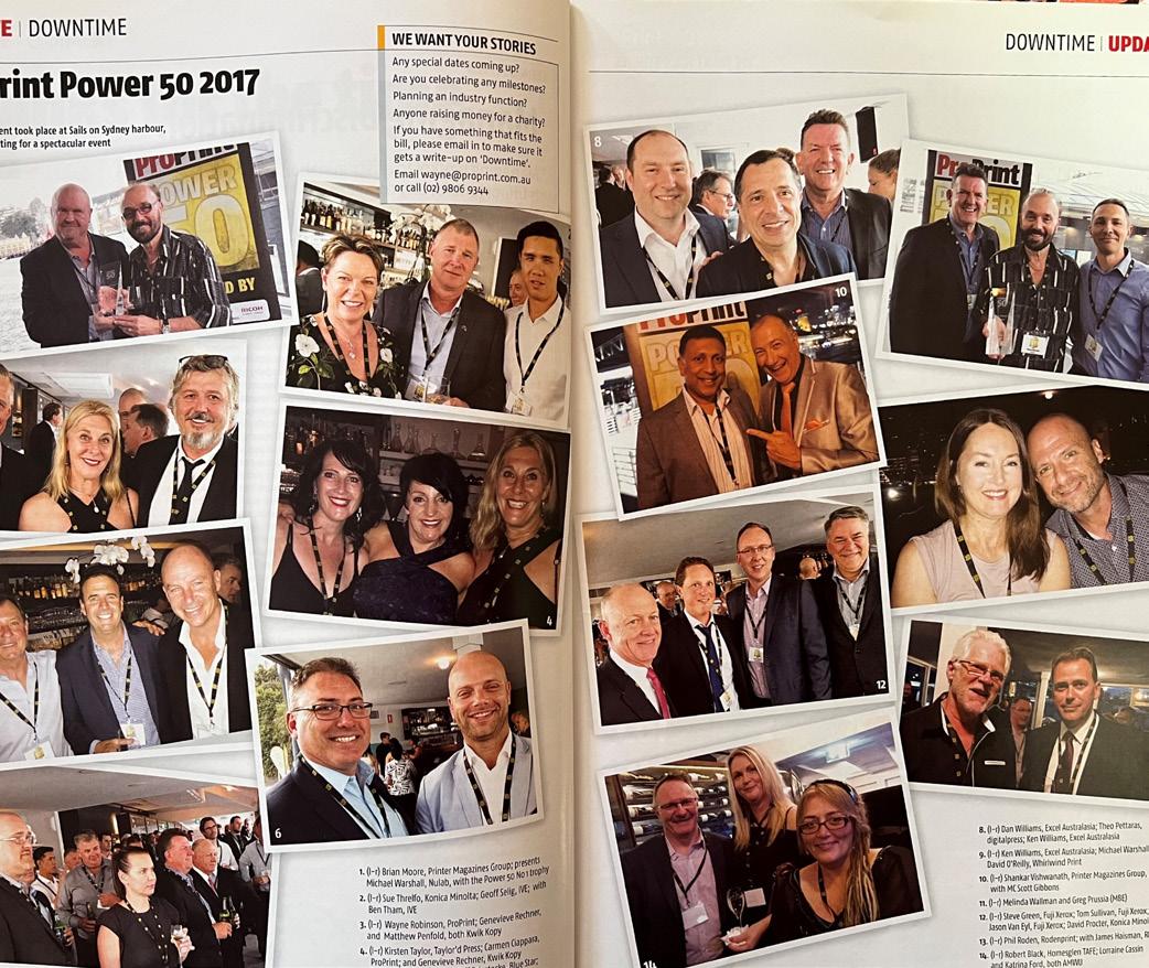 Left to right: EFI Connect features; Steven Dunwell retires; Norman J Field leaves industry; Print Approach receives a visit from PM Malcolm Turnbull; a Durst Rho SPC 130 ad; Roger Kirwan disrupts the market; Printer Media Group takes over ProPrint; Currie Group Road Show features; Power 50 2017 photo highlights; Bright Print Group acquires Enviro; Print to Parliament held and Digitalpress invests in a new Iridesse from Fuji Xerox.