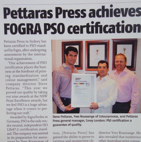 www.proprint.com.au WE WANT YOUR STORIES Any special dates coming up?Mohawk Show Creative types mingled with printers at Sydney’s plush Arthouse Hotel as BJ Ball presented the New South Wales leg of the annual Mohawk Show on 15 May. The touring event, which is run by US manufacturer Mohawk Papers, showcased winners of the Mohawk Award. Entries into the competition, which came in from around the world, were all printed on one of the premium uncoated brands for which Mohawk is known. This year there was one Australian winner of the prestigious awards, Paul Garbett from Naughty Fish design. on Graphics’ Konecke Ball’s Garth Corcoran and Aaron Carter with Maria SedoFont from PMG and Brown, chief executive of BJ Ball Ball sales executive Michael Tsiailis with Dominion Print Group managing director orn Press managing director Craig Foley with Circle Communications managing director Campbell Ball’s Glen Ellis, and DES’s Mark McInnes termarx Graphics’ Alan Fawcett, David Jones’ Karin Rojas, Ball’s John Pennock ndra Berzins, studio manager at Folk, with Lindsay Yates Group Paul Richardson Darrin Marshall UPDATE DOWNTIME 1 3 4 www.proprint.com.au ProPrint JPE Industry Review night Prominent journalist Tim Burrowes, who edits media and marketing website Mumbrella, was the guest speaker at the Junior Printing Executives Industry Review Night. The function’s other speaker was BT Financial Group chief economist Chris Caton The Industry Review Night was held on 13 May at the North Ryde RSL in Sydney. It was organised by the Printing Industries Association of Australia, JPE and the Lithographic Institute of Australia. Mumbrella editor-inchief Tim Burrowes, Graham Trickey and DIC’s Meredith Darke Gary Wilson from Expense Reduction Analysts with Colin Burnell from Graphics Plus Printing president Glenn Ford from BJ Ball, Aaron Millner from Bottcher and Tom Walkerden from BJ Ball Lynne and Russell Morrow from Morprint with JPE past president Steven Gamble Ray Berwick won a NSW jersey autographed by former Blues skipper Wayne Pearce 2. Heidelberg’s Nick Hammond, Bob Milner and Savas Mystakidis Nominees: Shanmugan Vadiveloo, Patricia Teo, Romeo Abellana, Nicole Clark, Lauren Peatman Graduate of the Year Samuel Moss from Sinnott Brothers 5. A member Steve Kyd with Patrick Rey and John Sfikas from Anzpac 6. Sinnott Brothers general manager Stephen Cuthbert and Kayell sales director Andreas Johansson LIA-Heidelberg Grad Awards UPDATEDOWNTIME Samuel Moss from IPMG firm Sinnott Brothers was named LIA-Heidelberg Graduate of the Year at an event in Sydney on 4 June. Sinnott Bros general manager Stephen Cuthbert said Moss had impressed supervisors with his intel ligence and enthusiasm during his apprenticeship. The other finalists were Shanmugan Vadiveloo from Opus Group book arm Ligare, Nicole Clark from News Ltd, Romeo Abellana from Anzpac Services, Lauren Peatman from Integrated Marketing Solutions and Patricia Teo from Jet Swimwear. 4 3 6 A PrintWeek publication GLOBALISED BUYING PHOTO SPECIAL OFFERING CROSS-MEDIA ALSO INSIDE... Profile Industrial Printing Technology Soft proofing Product Fujifilm Jet Press 540W Pulling in crowds from state to state Knowledge and networking at Heidelberg Women in Print p22 International print brokers take aim Corporate clients are increasingly demanding worldwide deals p30 Will web services buoy your business? Don’t expect an expansion into cross-media to be easy sailing p34 Sick of being left exposed, suppliers are determined to break the cycle Knock-on effects of debt ANALYSIS CREDIT TERMS PROFILE STAR BUSINESS www.proprint.com.au20 ProPrint June 2013 I t takes quite a while to get around Hannanprint’s Warwick Farm supersite. That’s not only because of the building’s aircraft-hangar footprint, although that’s part of it. The other reason for the slow progress is the tour guide, Tony Dedda. The outgoing managing director of the IPMG-owned business just keeps stopping. People have told ProPrint in the past that Dedda prides himself on knowing everyone’s name. Taking a tour of Warwick Farm with him, it’s clearly not lip service. Dedda is shaking hands, shouting out ‘g’day’, asking after people’s children. One worker, who was offered extended leave after a family member fell ill, tells ProPrint, unprompted, “Not every boss is like Tony. It’s nice.” Over recent weeks, Dedda has also been playing tour guide for an increasing number of customers. Warwick Farm is a showpiece; it’s easy to understand why he would want to show it off. While there are no customers visiting the plant when ProPrint tours, they are there in spirit. Warwick Farm is still sparkling and new; it lacks the lived-in feel of even the cleanest print shop. Dedda’s office is bare, so it’d be hard to miss the single piece of A4 paper pinned to the empty noticeboard in an otherwise sparsely decorated room. The note reads, “There is only one boss, the customer. He can fire everyone in the company from the directors down simply by spending his money elsewhere.” For Dedda, this philosophy starts as the top and permeates the business. “The whole company is customer focused. Not just me; it’s the guy in the bindery, the guy in the pressroom. We understand the customer is the business. It is not a motherhood-type statement. We live it.” Back to the tour, which continues at a stop-start pace. Of course, the gregarious MD is not the only reason that a journey around the newly opened plant takes quite some time. Warwick Farm is all about size. It would be the biggest plant built since PMP’s Moorebank supersite in the mid90s. The former Kimberly Clark plant AutoJobChange control package with QuickStart pre-inking function; inline control systems for cut-off register; ink density control and colour register. While twin webs are not as popular wider presses, Dedda is an advocate of the configuration. “Some people are frightened by having one web on top of the ot