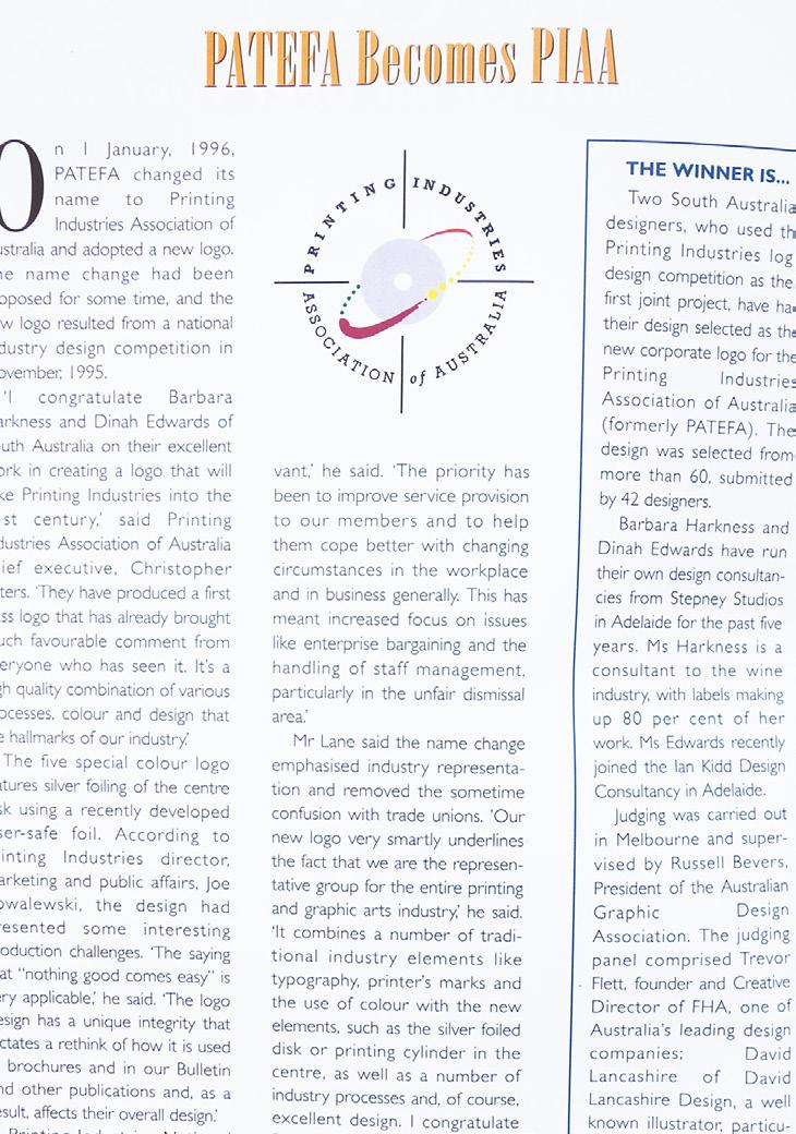 With Pakprint came plenty of talk about emerging digital technologies and prepress debate. PATEFA became the Printing Industries Association of Australia (PIAA) with South Australian designers Barbara Harkness and Dinah Edwards designing the winning logo, which featured five colours with silver foiling in the centre with a similar version of the logo still in use. Then PIAA president Peter Lane said the refresh went beyond symbolism as it would remove any confusion of trade union links. A GASAA conference in Queensland had golf high on the agenda.