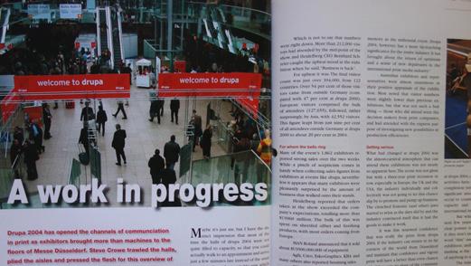 Top from left: ProPrint’s drupa guide; Postcards from drupa; Queensland’s print training centre moves; Kodak’s new plates; Anne Rimer elected GAMAA president; Prepress featured at drupa; Agfa promotes the Accuset; Fujifilm ad; Heidelberg’s new logo; Indigo lands in Australia; The Indigo E-1000 Digital Printer; Apple Type & Design merges with Colorplan to form Complete Imaging Centre.