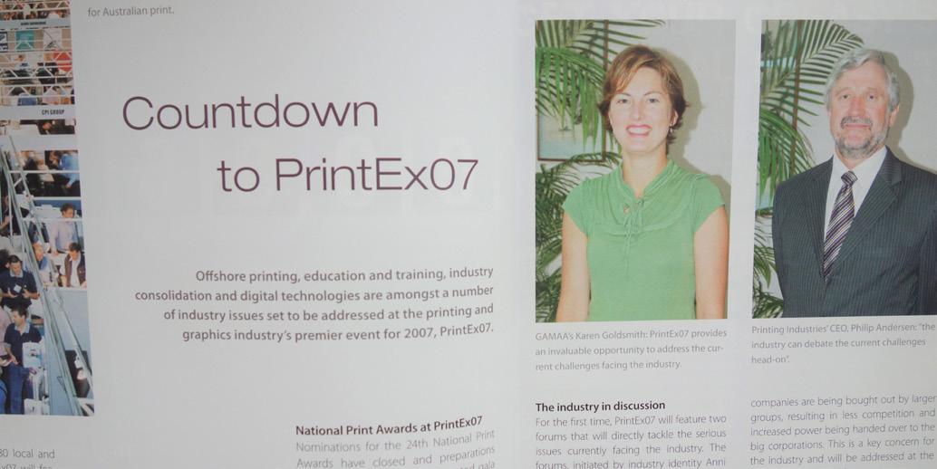 From left to right: More creative from Screen; Inaugural Women In Print function; CanPrint sets a new record; Matt Aitken features; Heidelberg feature on the front cover; An insightful letter to the editor; PrintEx07; Bright Print Group’s new Komori; NSW TAFE print school opening; Bernie Robinson talks CtP.