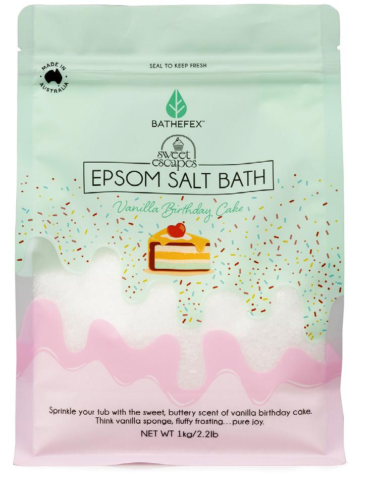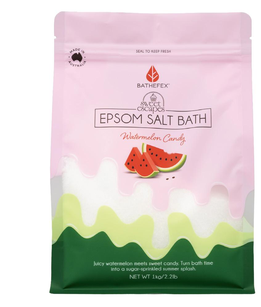 Turn bath time into a treat with Bathefex Sweet Escapes Epsom Salts, inspired by dessert-style fragrances including Vanilla Birthday Cake, Caramel Swirl and Watermelon Candy for a playful, mood-boosting soak.