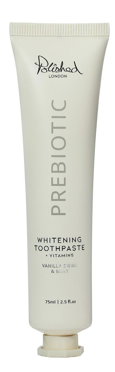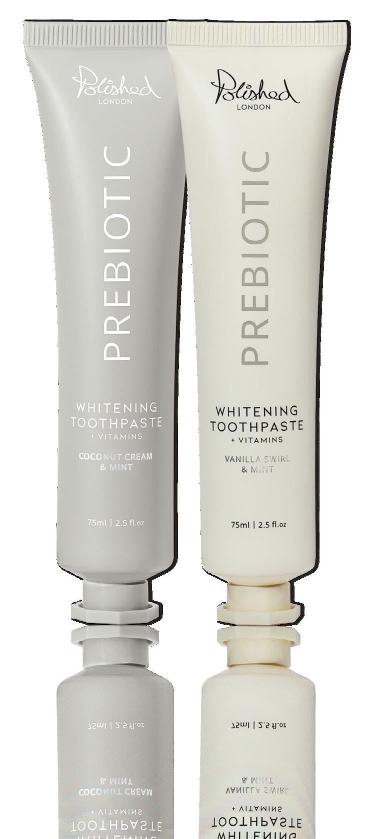 Support a brighter smile while caring for the oral microbiome with Polished London’s Prebiotic Whitening Toothpastes, available in Vanilla Swirl & Mint and Coconut Cream & Mint.