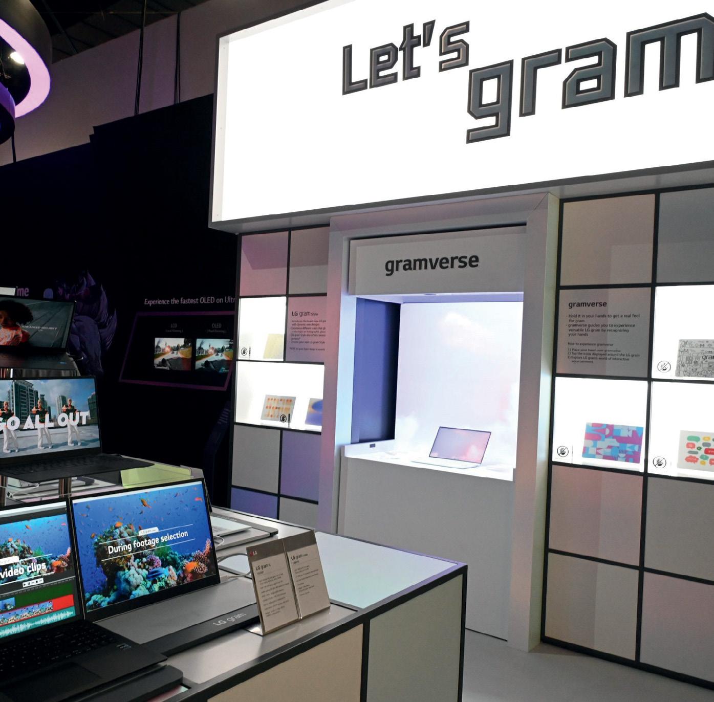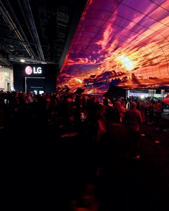LEFT TO RIGHT: The OLED T Transparent Screen can be placed virtually anywhere, even in the middle of the living room or in front of a window • LG put a spotlight on its commitment to sustainability, showcasing its ESG vision and latest innovations in an exhibit called the Better Life for All zone • LG’s new CordZero A9 Kompressor with Steam Power Mop is the company’s first cordless stick vacuum cleaner to offer steam mopping functionality. • LG displayed its MoodUp refrigerators with colourchanging LED door panels. • The LG OLED Wave greets visitors as they enter the LG booth, consisting of 260 55-inch OLED screens curved in and curved out that show the flexibility and picture quality of OLED. • LG is expanding its gram laptop range with the addition of the LG gram Ultraslim and LG gram Style, as well as new gram 17, 16, 15 and 14 laptops. • LG’s 97inch LG SIGNATURE OLED M is the world’s first consumer TV with Zero Connect technology, a wireless solution capable of real-time video and audio transmission at up to 4K 120Hz.