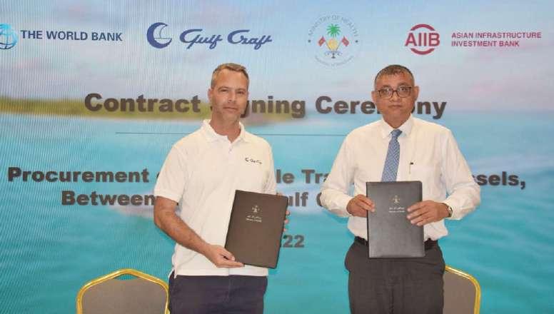 The contract was signed by State Minister - Ahmed Arfil on behalf of the Ministry of Health and Costas Eliopoulos - Production General Manager, Gulf Craft. The healthcare ministry aims to establish an efficient emergency response transport system throughout the Maldives to serve its citizens and tourists.