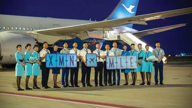 The inaugural flight, operated by a Boeing 787-8, landed at Velana International Airport at 06:05 pm local time. Starting 3rd August 2024, Xiamen Airlines will offer three weekly flights